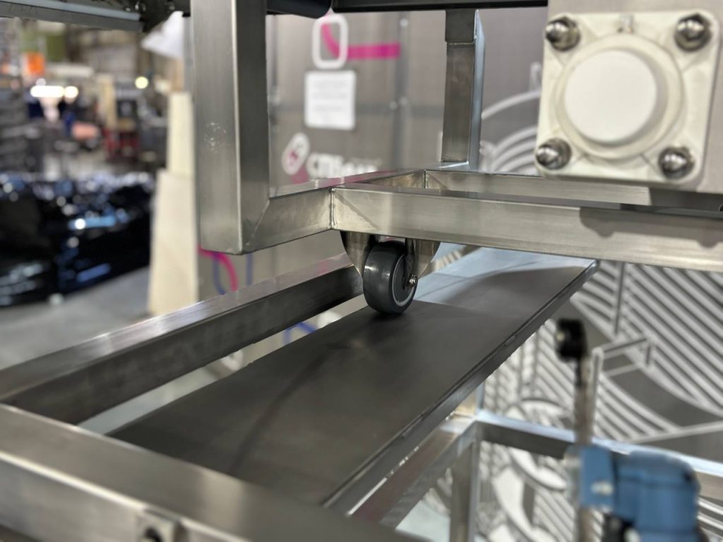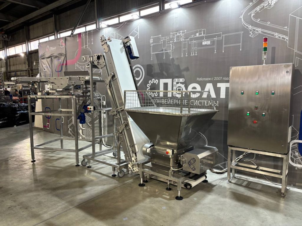 Все элементы конструкции выполнены из нержавеющей стали и полиэтилена PE-1000, мотор-редукторы СПБелт обеспечивают стабильную работу при промышленной нагрузке.
