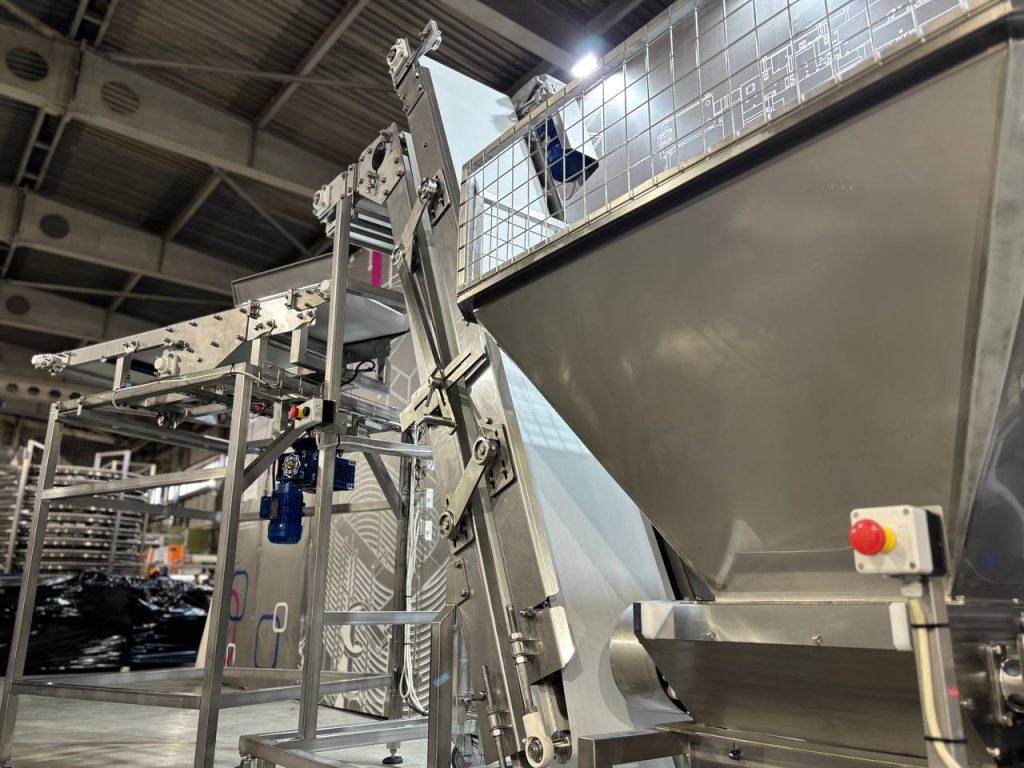 Для хлебопекарного предприятия разработана и изготовлена система автоматической подачи опары в тестомесы. Решение включает комплекс конвейеров и делитель, полностью адаптированных под особенности продукта, а именно, вязкое опарное тесто для мелкоштучных изделий.