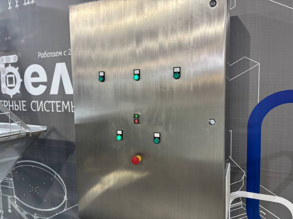 • общий пульт управления из нержавеющей стали с частотным регулированием скорости и выносными аварийными кнопками.