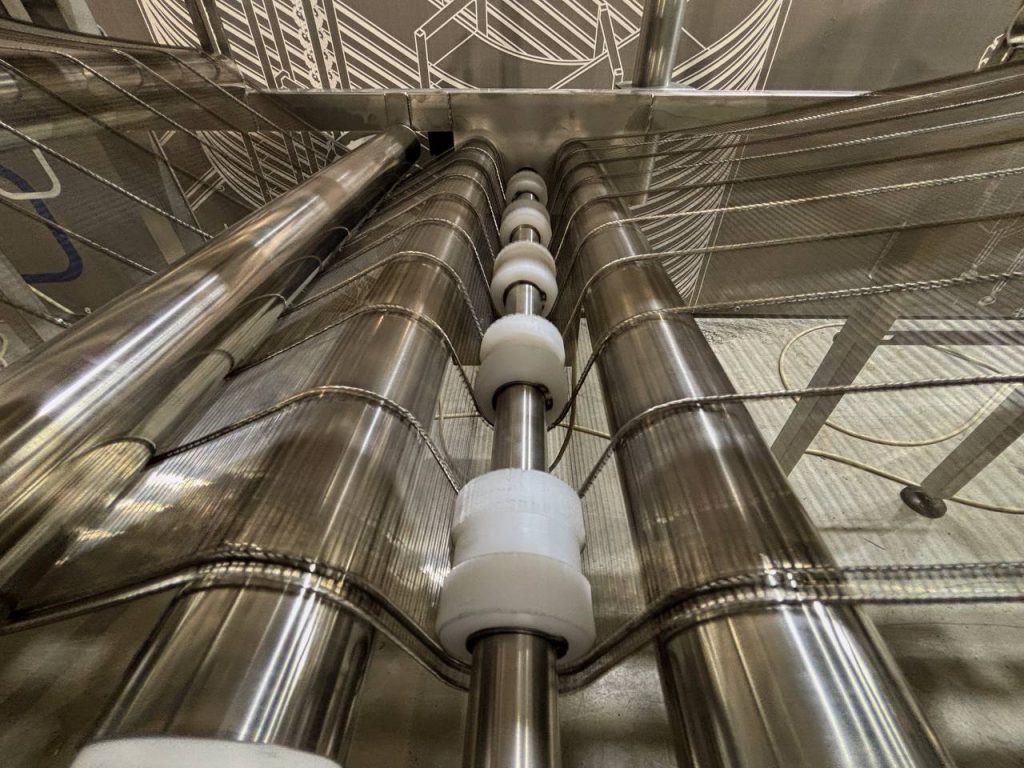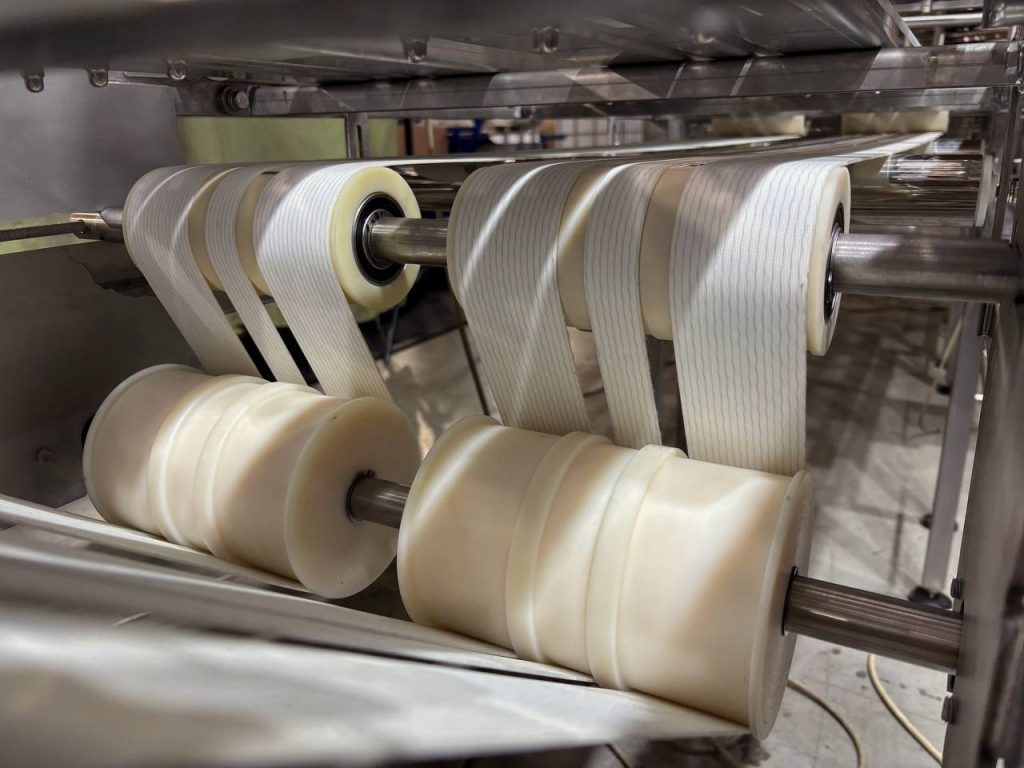 Для пищевого предприятия СПБелт изготовил комплект конвейеров, объединённых в единую линию — от выравнивания блинов до сворачивания трубочек с начинкой.
