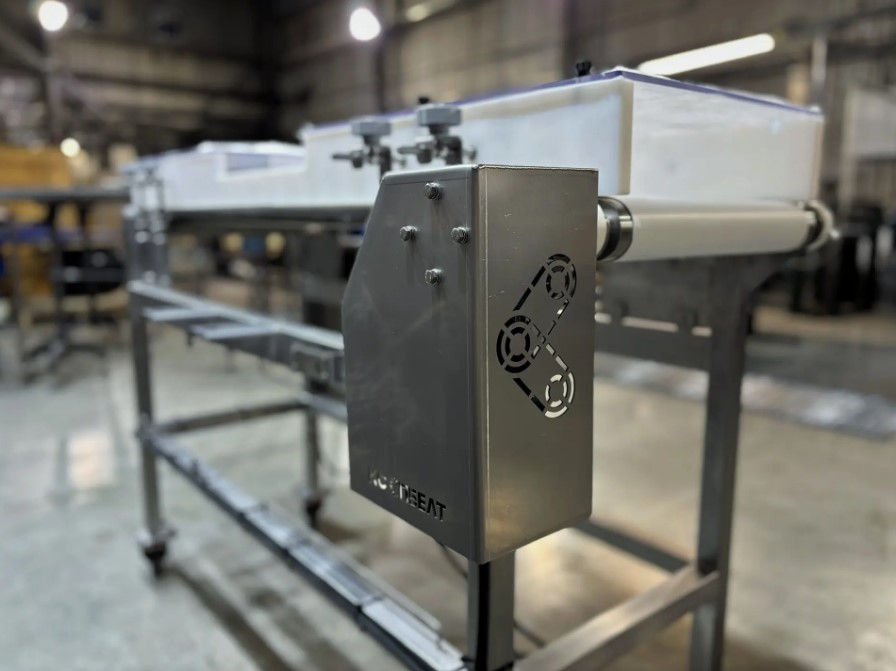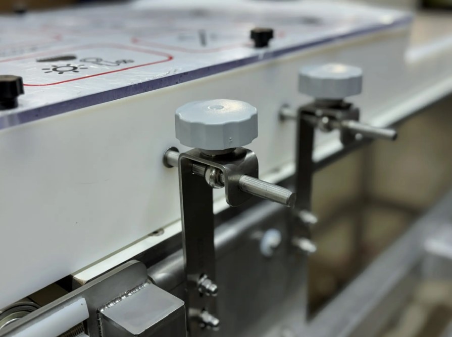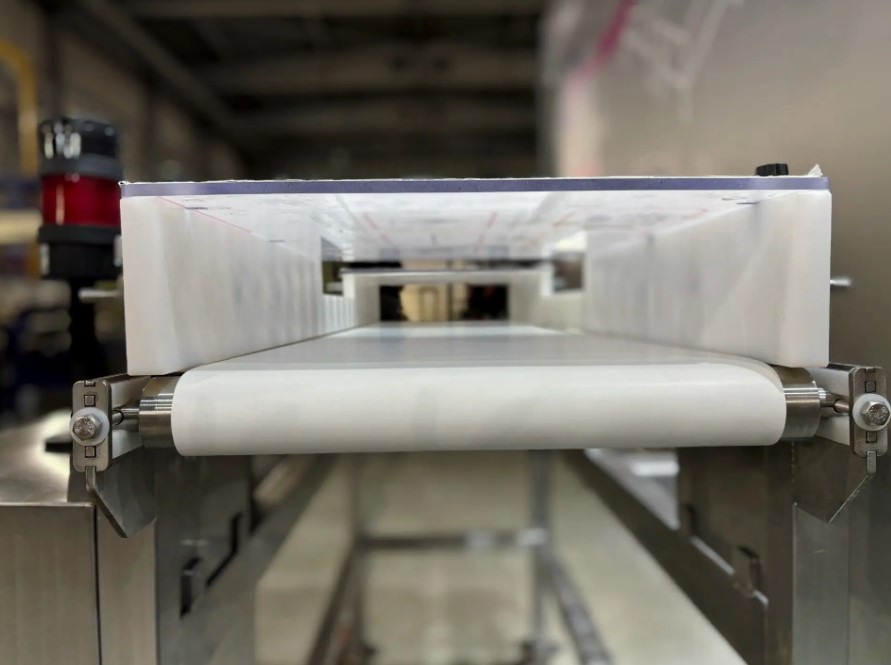 Изготовили ленточный конвейер для интеграции с металлодетектором на линии контроля пищевой продукции.