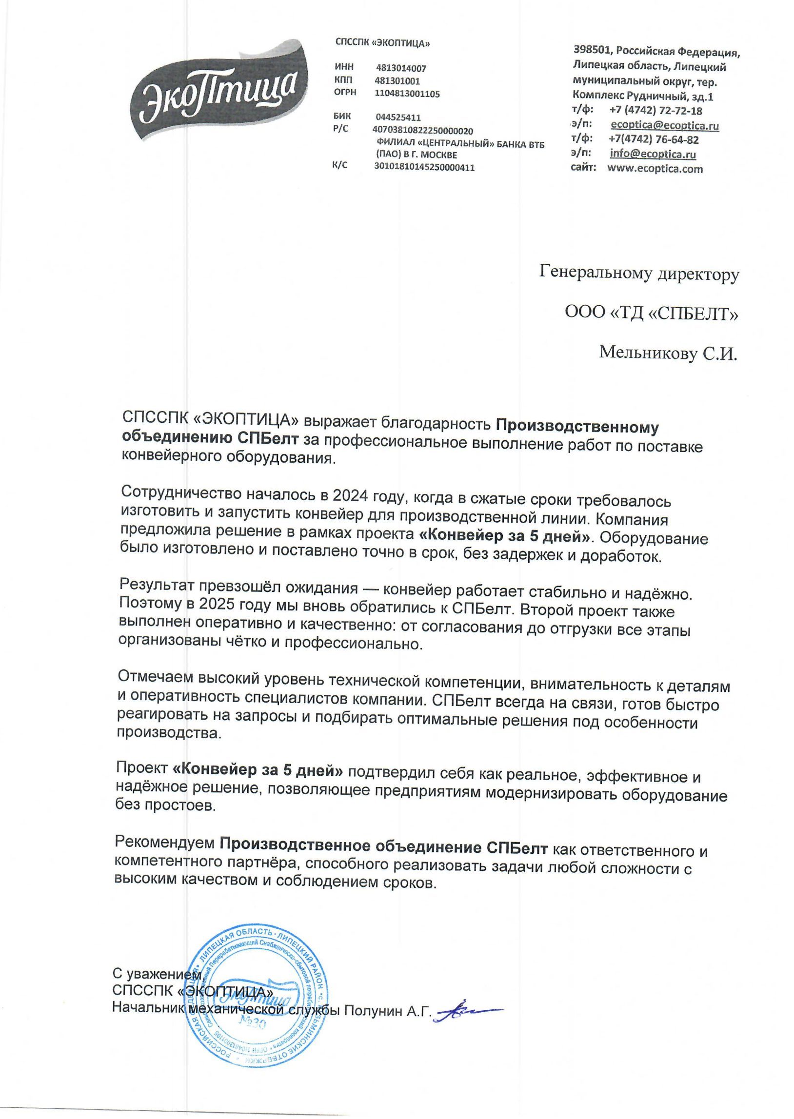 Выполняем работы по проектированию, изготовлению и техническому обслуживанию конвейерного оборудования, отдельных транспортеров, автоматизации и роботизации конвейерных линий.