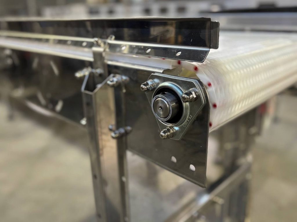 Для предприятия птицеводческой отрасли мы изготовили наклонный конвейер для транспортировки продукции на участке переработки.
